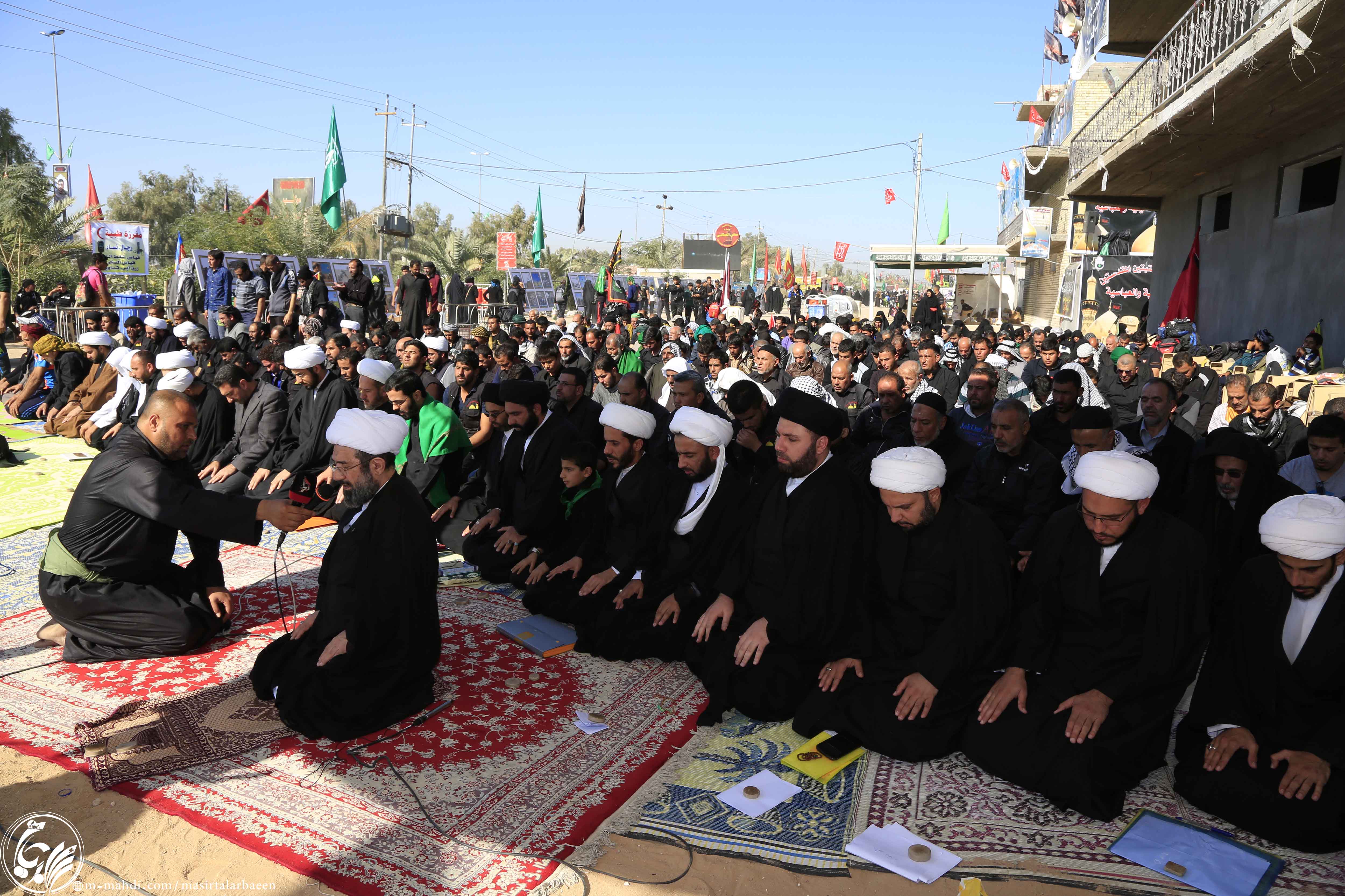 آية الله الشيخ باقر الايراوني يؤم المصلين في الموقع المركزي للمشروع التبليغي للحوزة العلمية في زيارة الأربعين