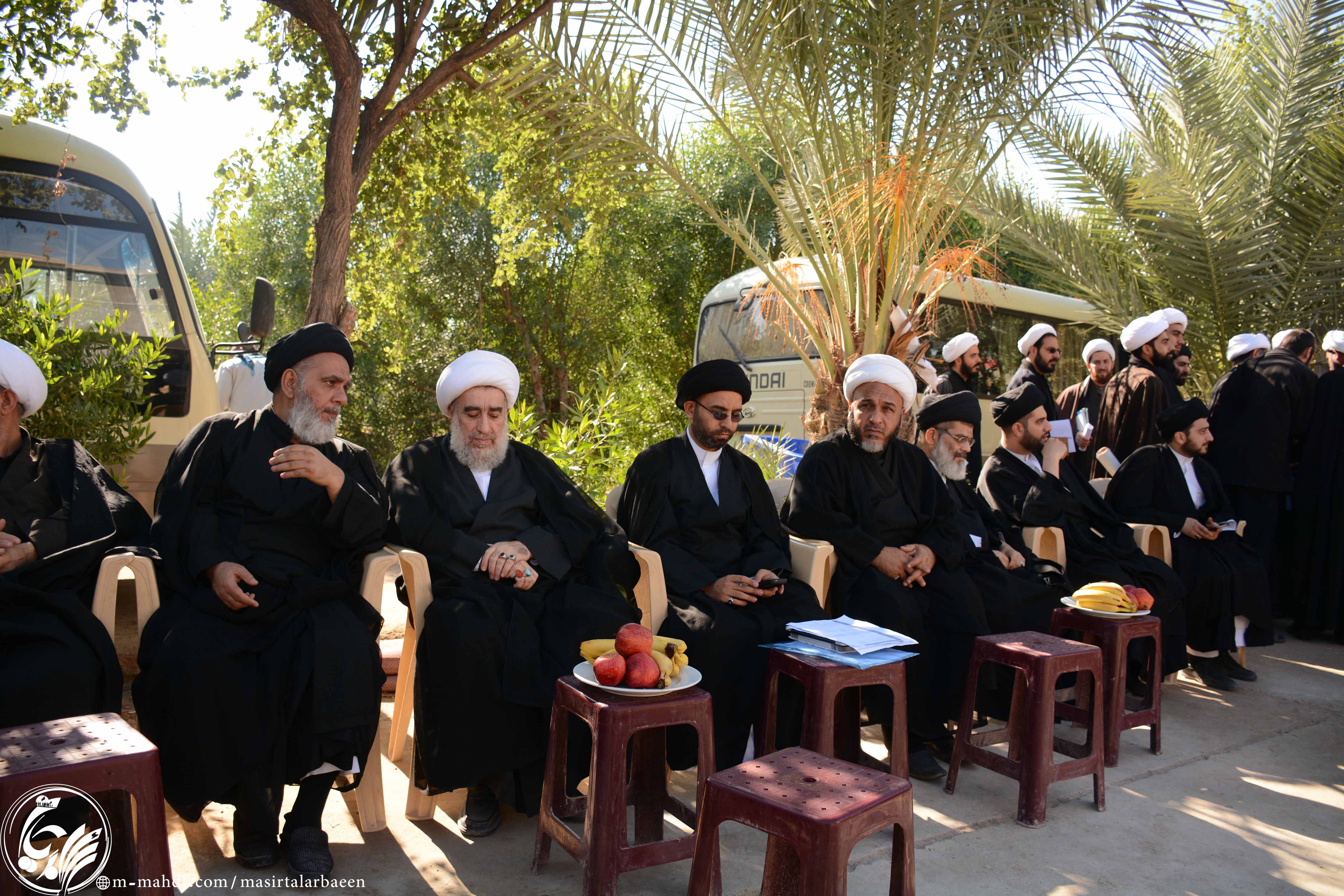 (١٢٥) آية الله الشيخ حسن الجواهري وآية الله السيد أحمد الاشكوري في زيارة للموقع المركزي للمشروع التبليغي للحوزة العلمية في زيارة الأربعين