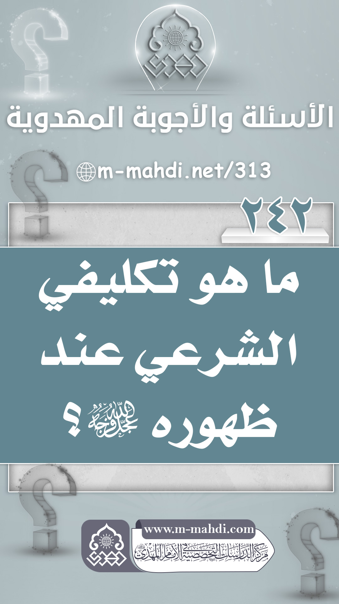 (٢٤٢) ما هو تكليفي الشرعي عند ظهوره (عجّل الله فرجه)؟
