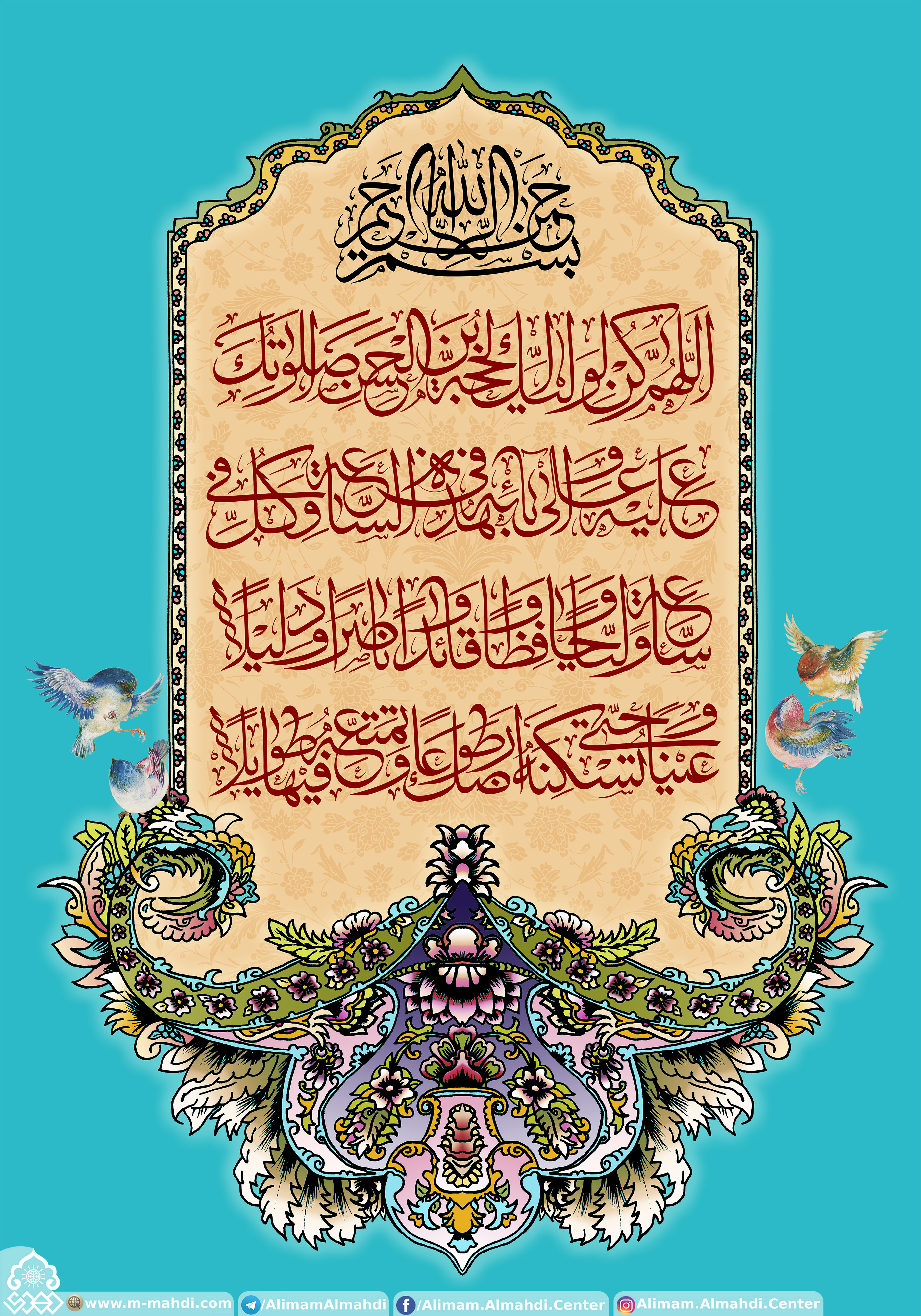 بسم الله الرحمن الرحيم اللهم كن لوليك الحجة بن الحسن صلواتك عليه وعلى آبائه في هذه الساعة وفي كل ساعة وليا وحافظا وقائدا وناصرا ودليلا وعينا حتى تسكنه ارضك طوعا وتمتعه فيها طويلا