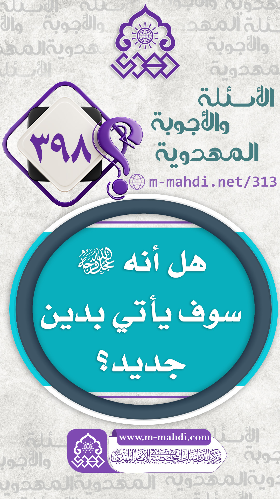 (٣٩٨) هل أنه (عجّل الله فرجه) سوف يأتي بدين جديد؟