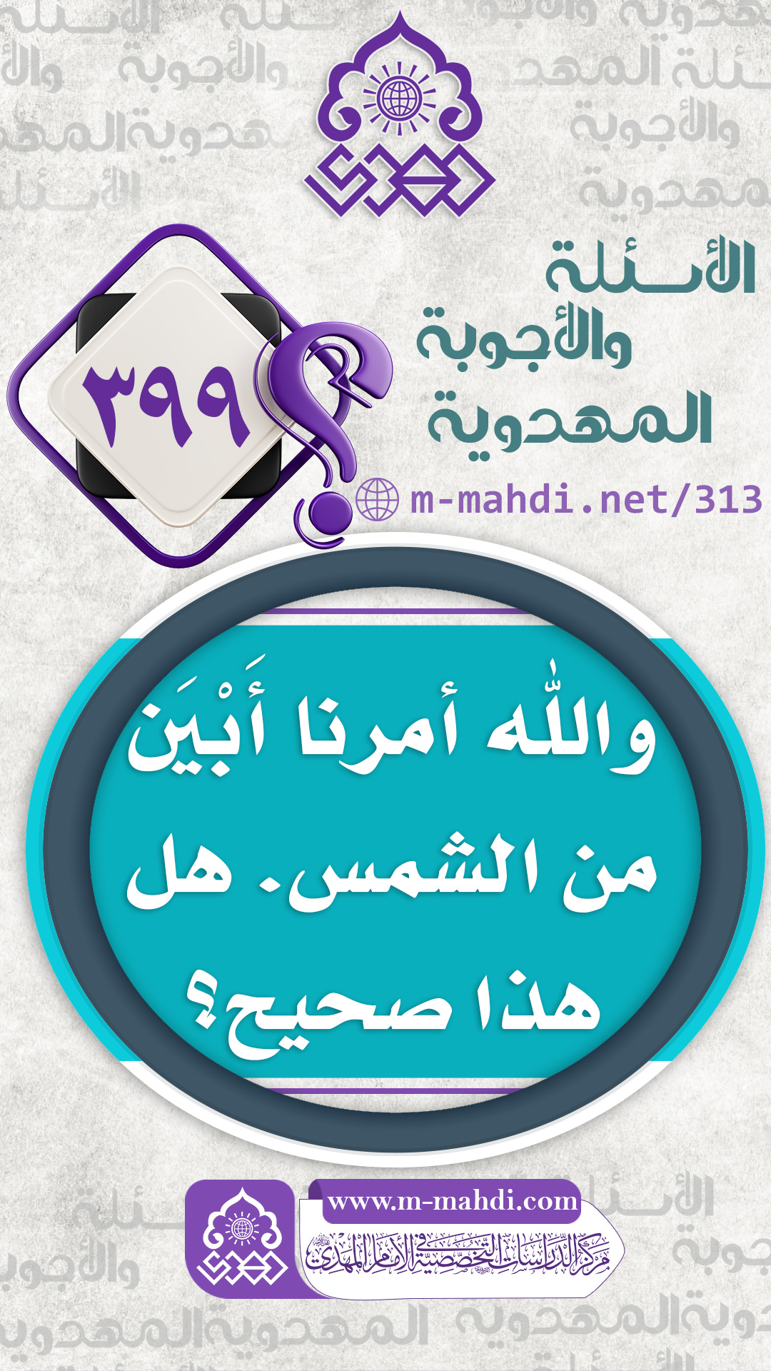 (٣٩٩) والله أمرنا أَبْيَن من الشمس. هل هذا صحيح؟