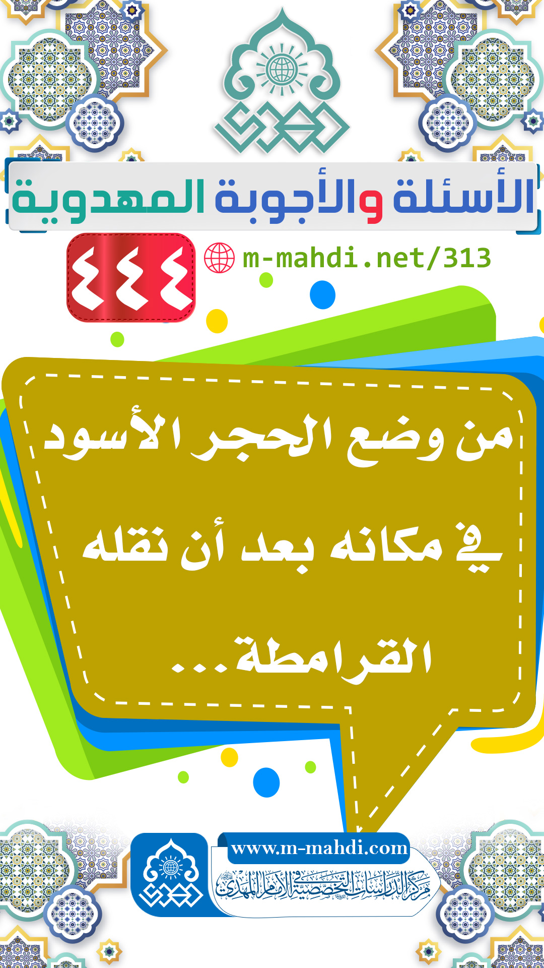 (٤٤٤) من وضع الحجر الأسود في مكانه بعد أن نقله القرامطة...