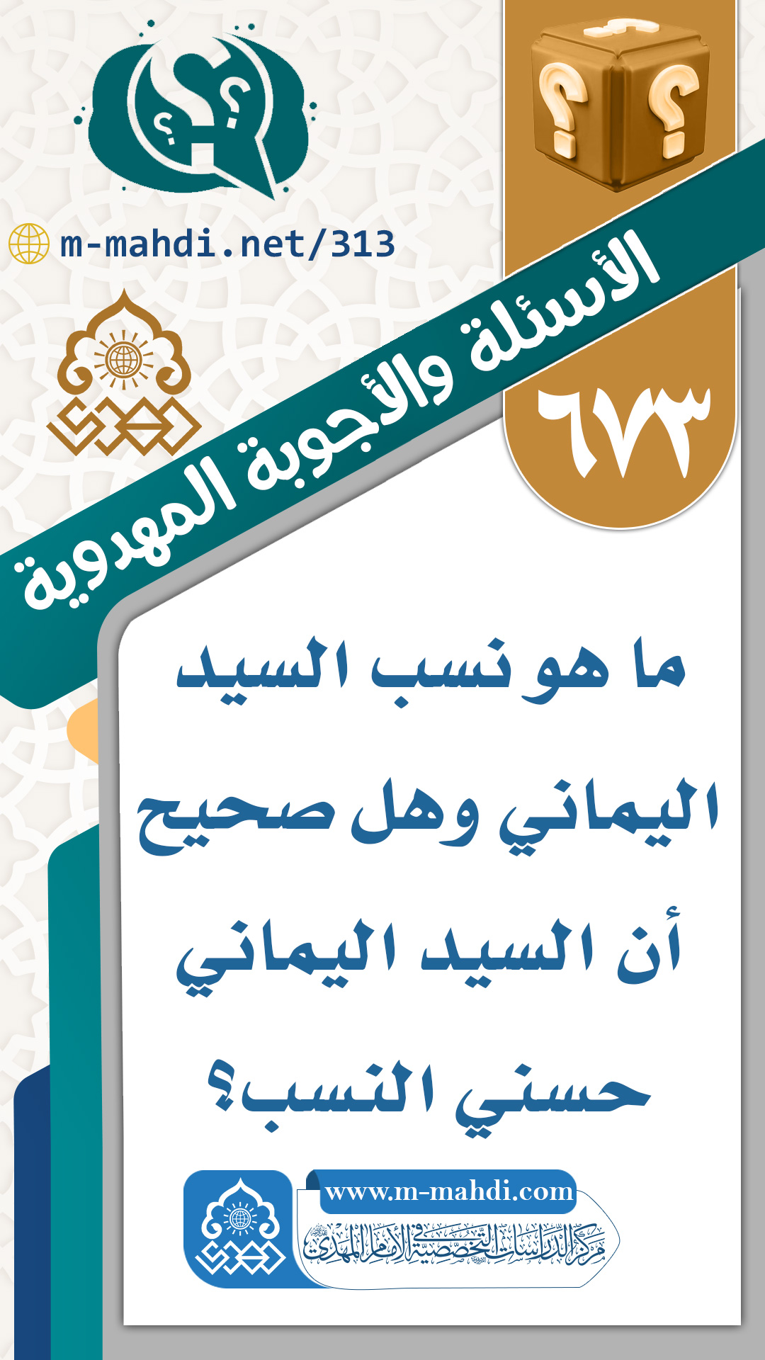 (٦٧٣) ما هو نسب السيد اليماني وهل صحيح أن السيد اليماني حسني النسب؟