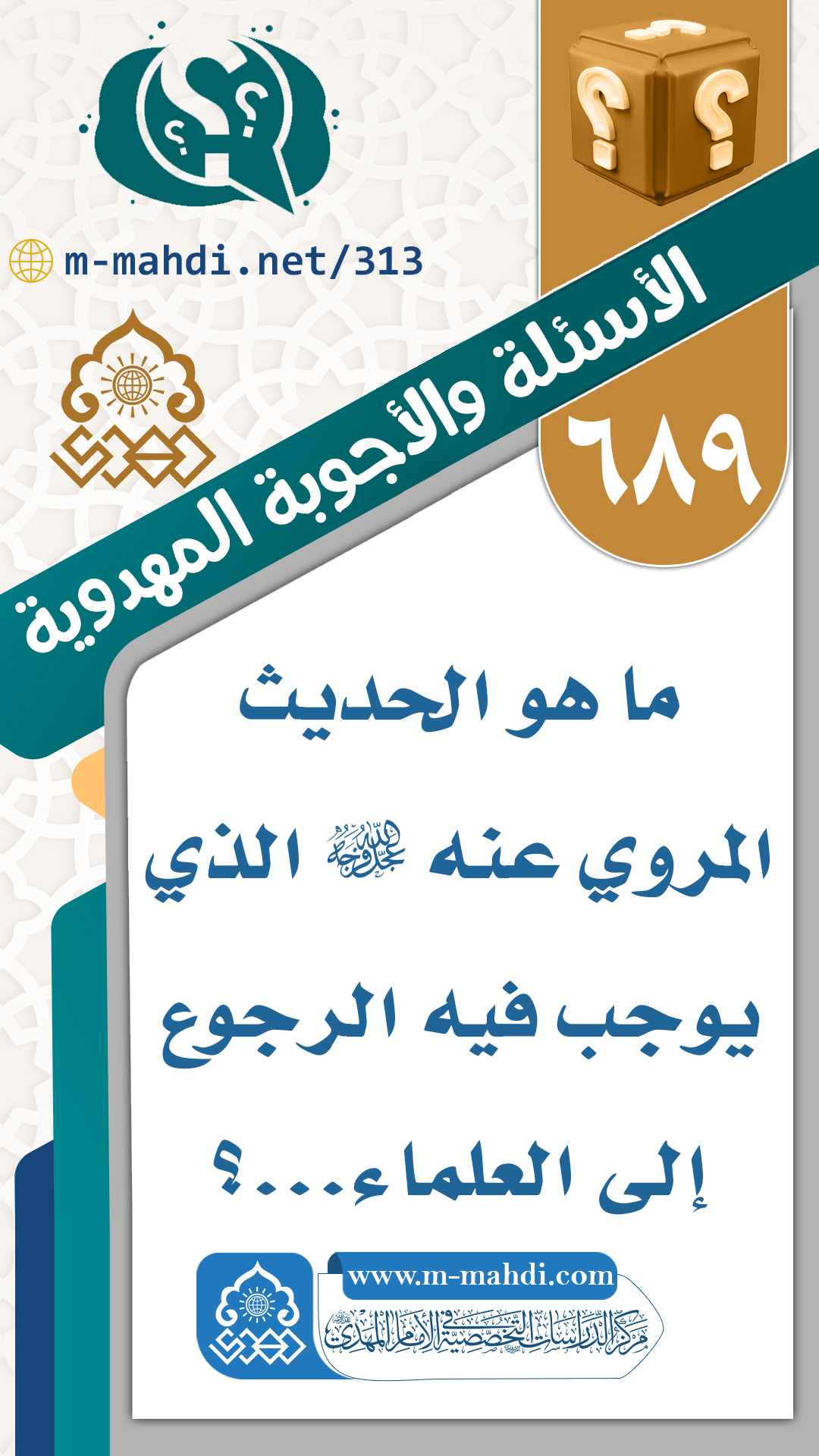 (٦٨٩) ما هو الحديث المروي عنه (عجّل الله فرجه) الذي يوجب فيه الرجوع إلى العلماء...؟