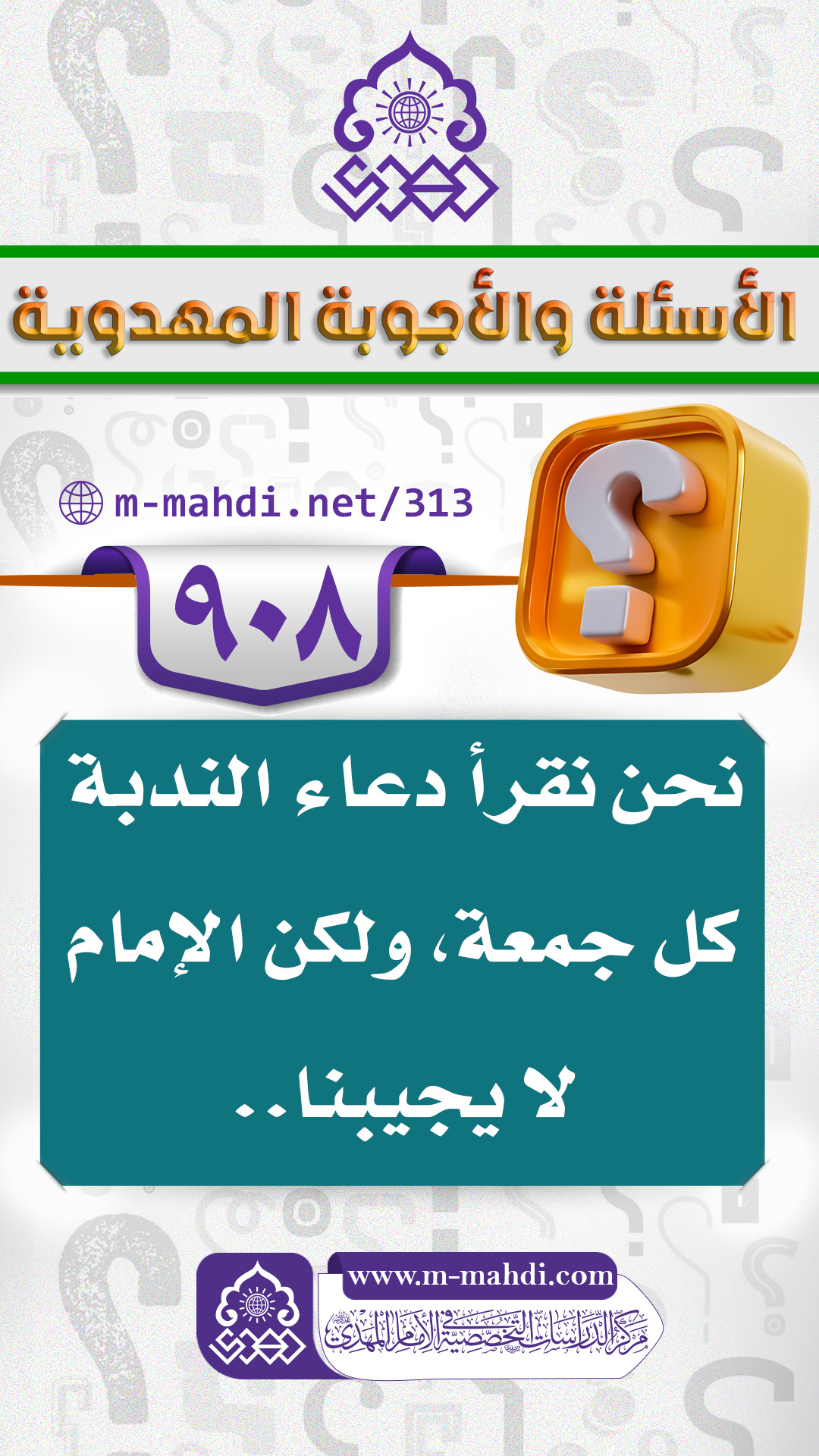(٩٠٨) نحن نقرأ دعاء الندبة كل جمعة، ولكن الإمام لا يجيبنا..