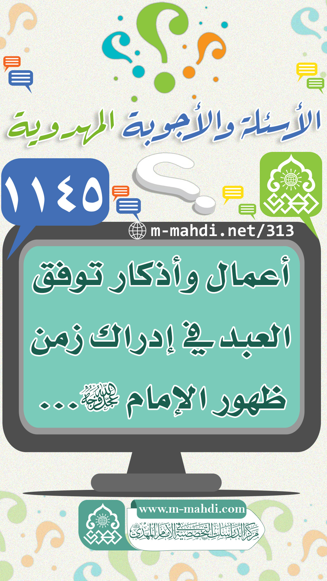 (١١٤٥) أعمال وأذكار توفق العبد في إدراك زمن ظهور الإمام (عجّل الله فرجه)...