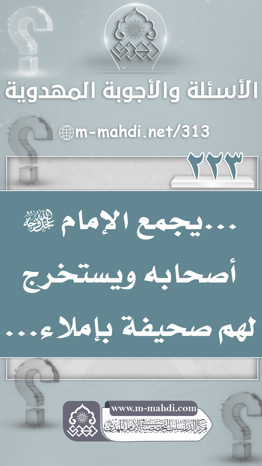 (٢٢٣) ... يجمع الإمام (عجّل الله فرجه) أصحابه ويستخرج لهم صحيفة بإملاء...