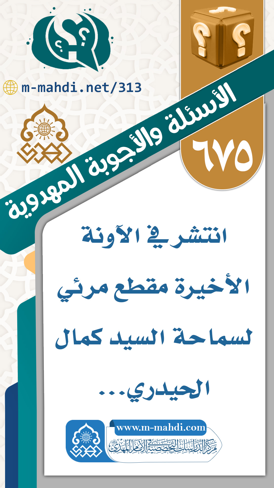 (٦٧٥) انتشر في الآونة الأخيرة مقطع مرئي لسماحة السيد كمال الحيدري...