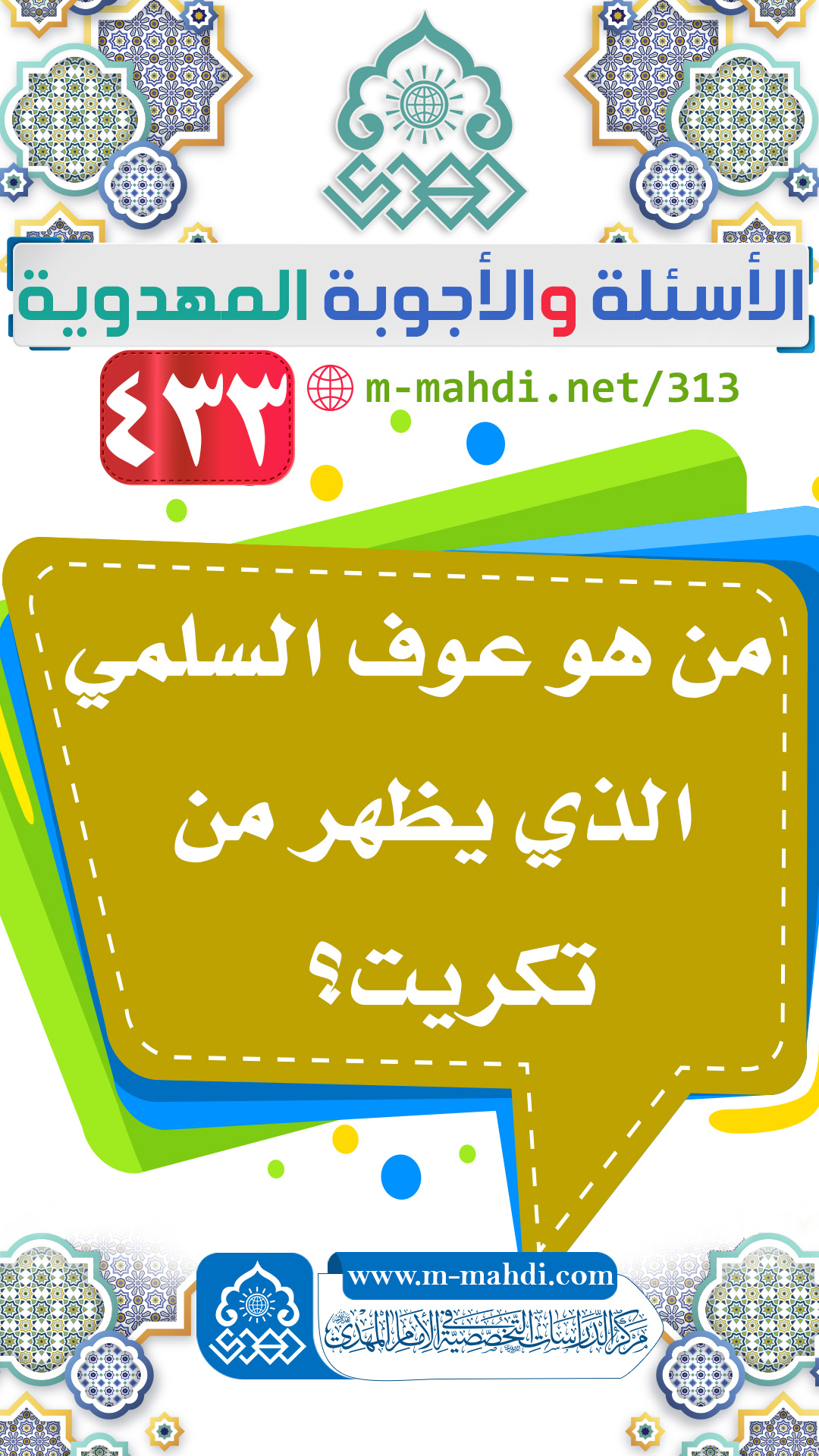 (٤٣٣) من هو عوف السلمي الذي يظهر من تكريت؟