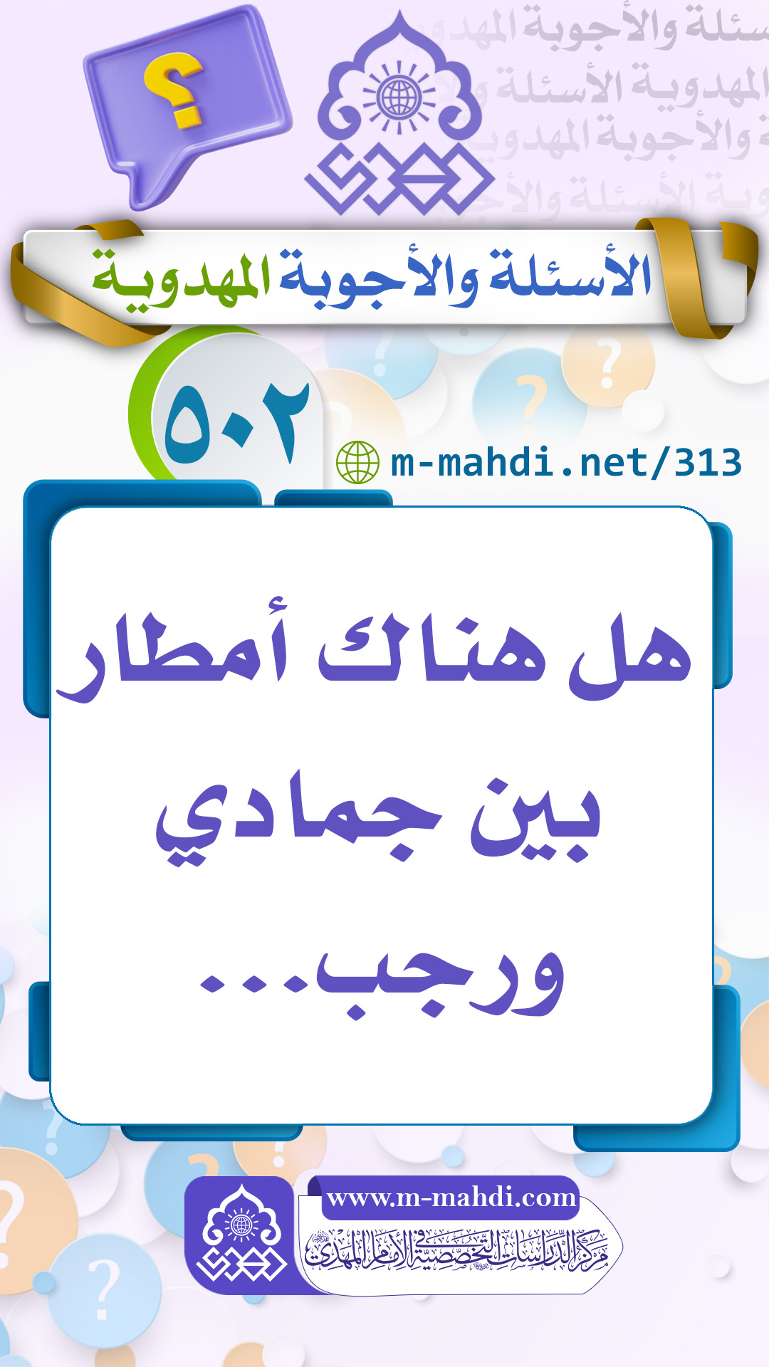 ولزيادة الإيضاح حول ما يتعلق بهذه الأمطار يمكنكم مراجعة السؤال والجواب التالي ضمن حقل الأسئلة والأجوبة المهدوية في الموقع تفضلوا: