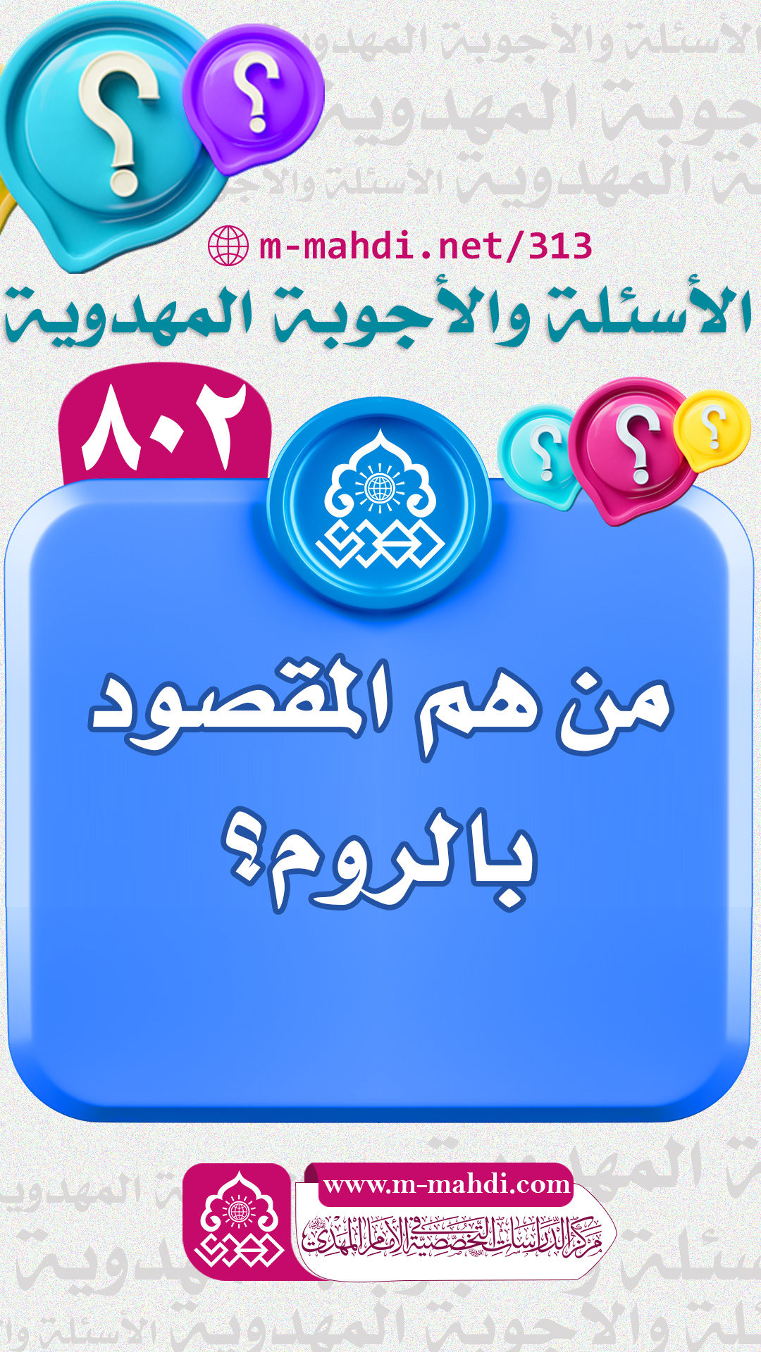 فقد ورد في كتاب عصر الظهور للشيخ الكوراني ما نصه [المقصود بالروم في الأحاديث الواردة عن آخر الزمان وظهور المهدي (عجّل الله فرجه): الشعوب الأوربية وامتدادهم في القرون الأخيرة في أمريكا. فهؤلاء هم أبناء الروم، وورثة إمبراطوريتهم التاريخية]