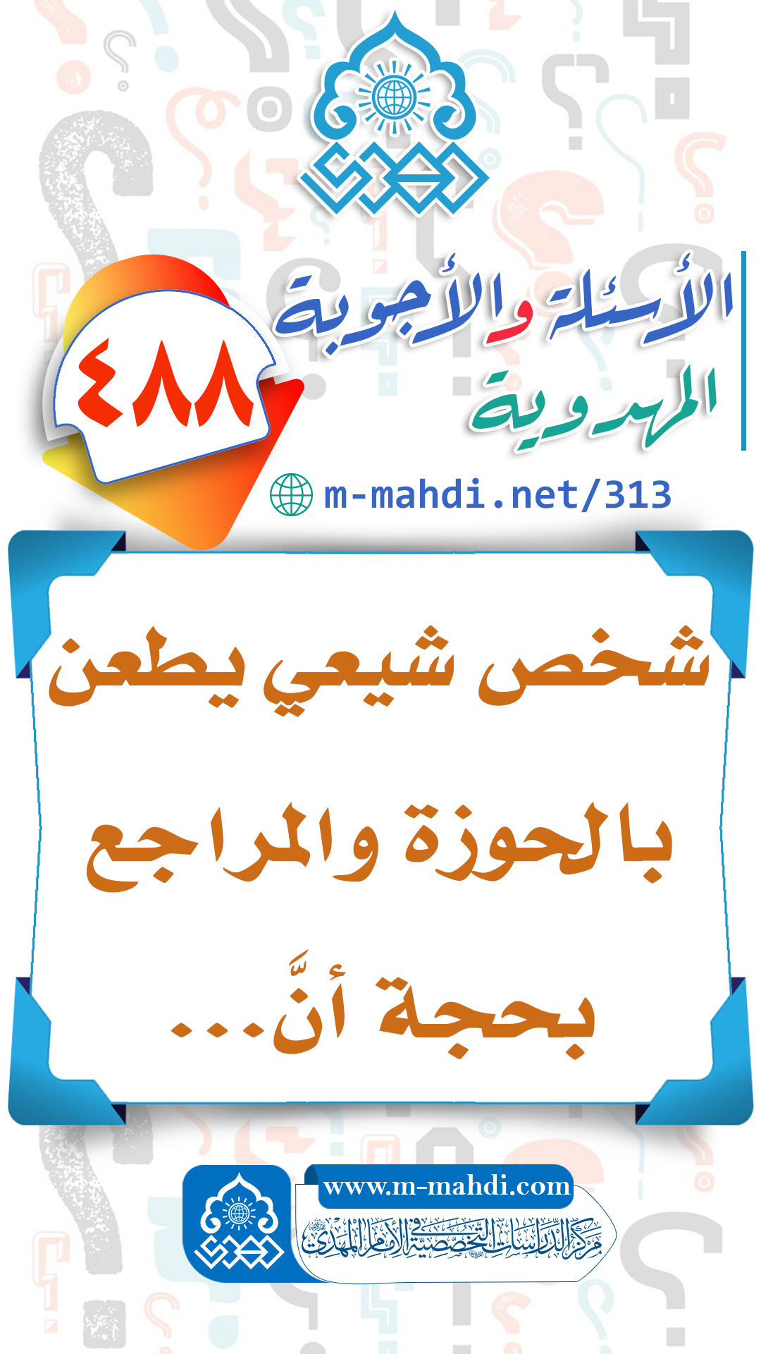 (٤٨٨) شخص شيعي يطعن بالحوزة والمراجع بحجة أنَّ...