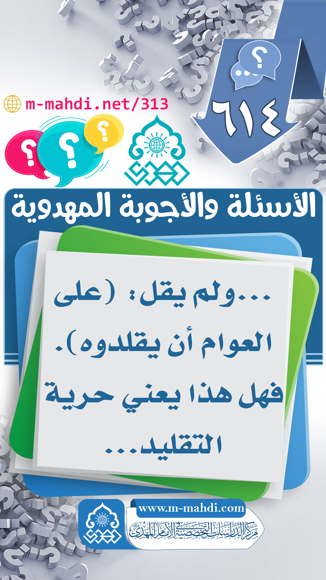 (٦١٤) ... ولم يقل: (على العوام أن يقلدوه). فهل هذا يعني حرية التقليد...