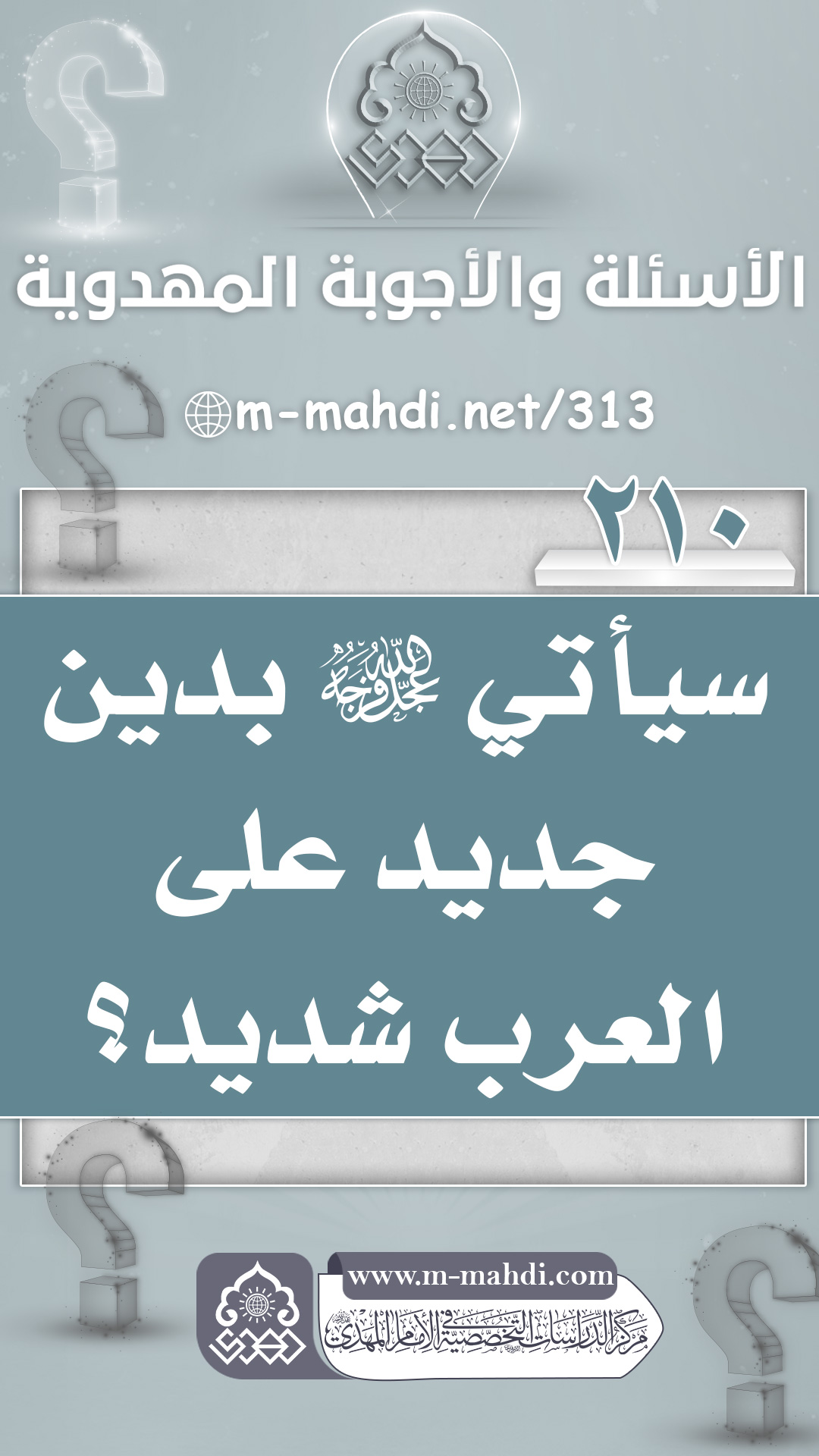 (٢١٠) سيأتي (عجّل الله فرجه) بدين جديد على العرب شديد؟
