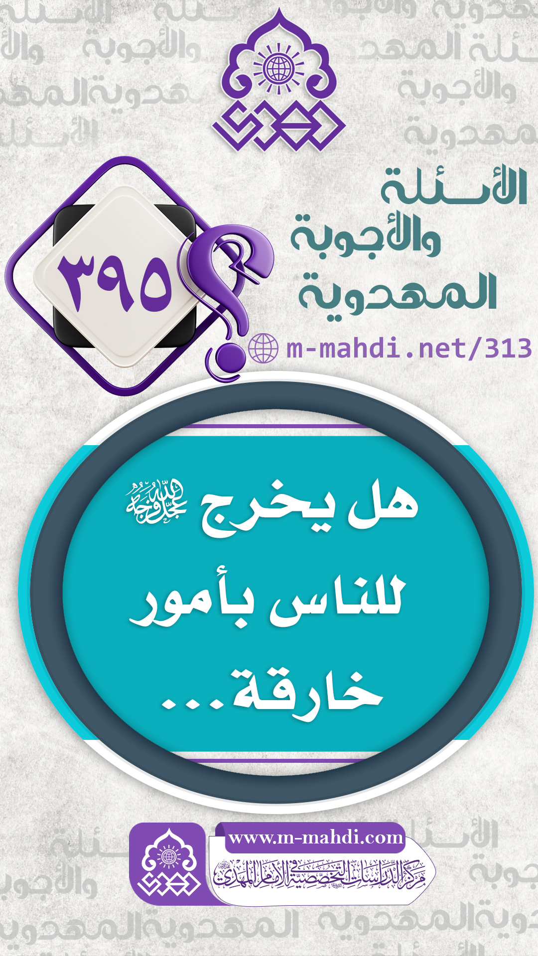 (٣٩٥) هل يخرج (عجّل الله فرجه) للناس بأمور خارقة...