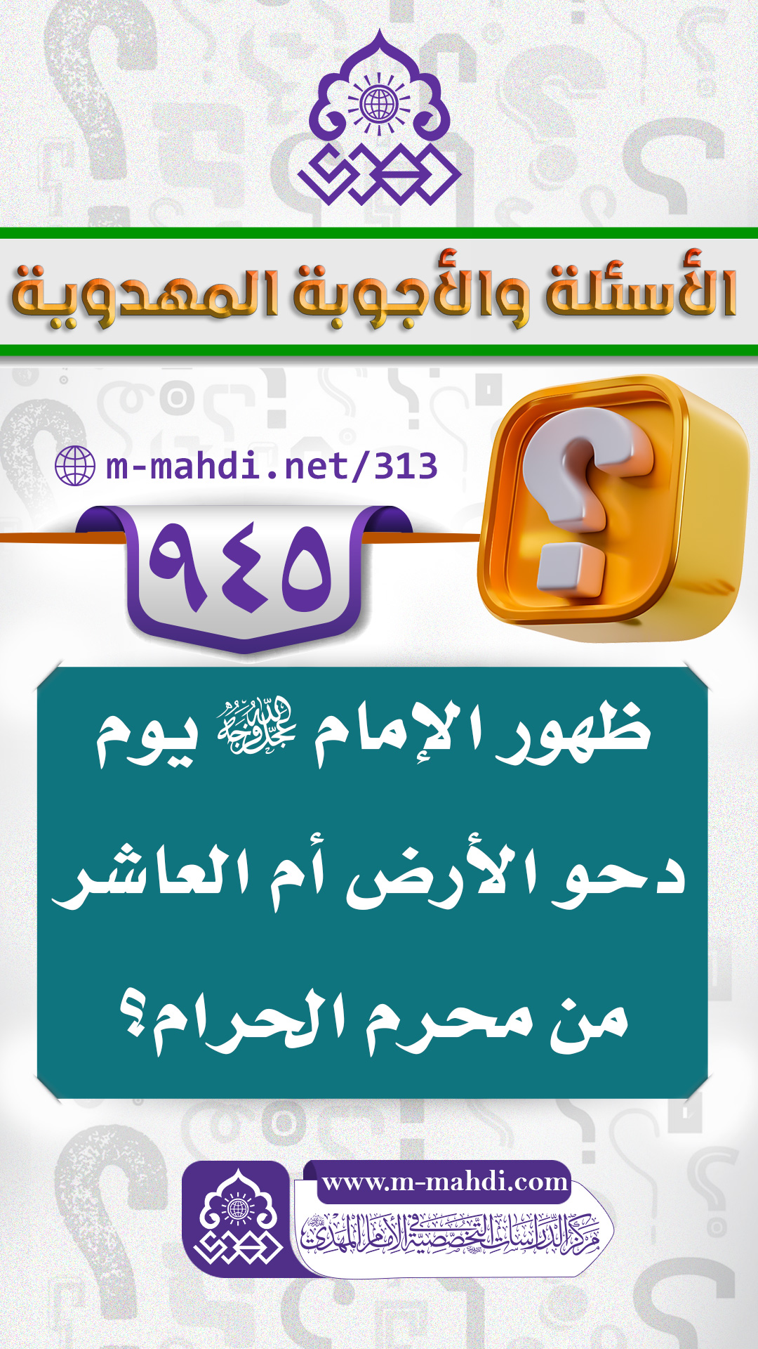 (٩٤٥) ظهور الإمام (عجّل الله فرجه) يوم دحو الأرض أم العاشر من محرم الحرام؟