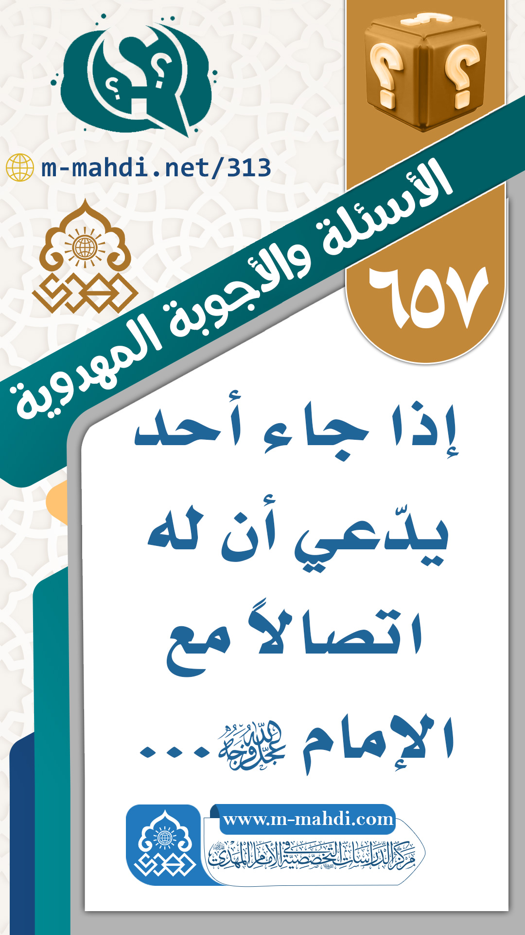(٦٥٧) إذا جاء أحد يدّعي أن له اتصالاً مع الإمام (عجّل الله فرجه)...