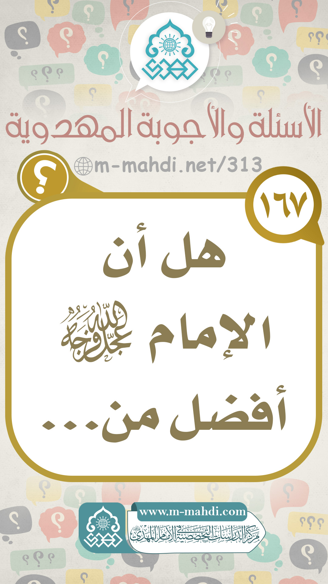 (١٦٧) هل أن الإمام (عجّل الله فرجه) أفضل من...