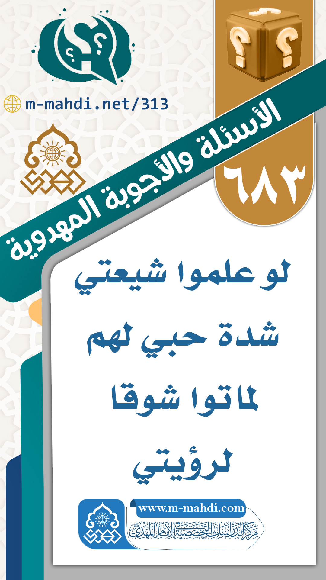 (٦٨٣) لو علموا شيعتي شدة حبي لهم لماتوا شوقا لرؤيتي