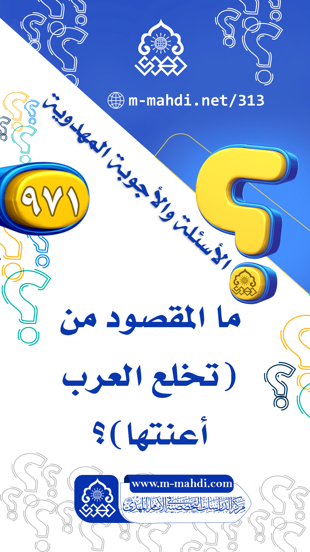 وأما المقصود من خلع العرب لأعنتها فهو كناية عن تمرد الكثير من العرب وخروجهم عن الطاعة لحكامهم وسلاطينهم، وتخصيص العرب بذلك بلحاظ أن الرواية في سياق الحديث عنهم في فترة معينة، ولا يعني ذلك أن التمرد والعصيان لا يحصل عند غيرهم.