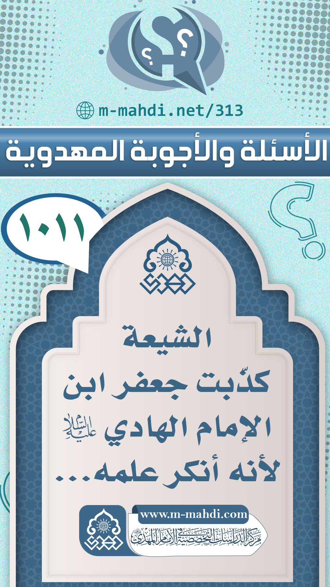 (١٠١١) الشيعة كذّبت جعفر ابن الإمام الهادي (عليه السلام) لأنه أنكر علمه...