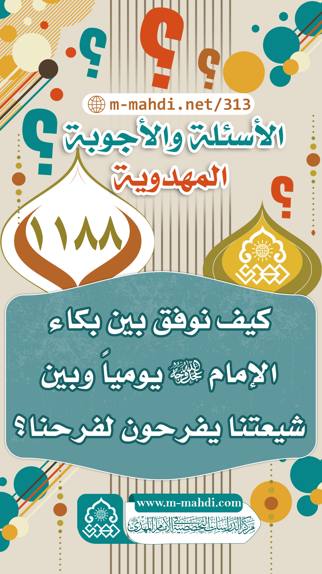 (١١٨٨) كيف نوفق بين بكاء الإمام (عجّل الله فرجه) يومياً وبين شيعتنا يفرحون لفرحنا؟