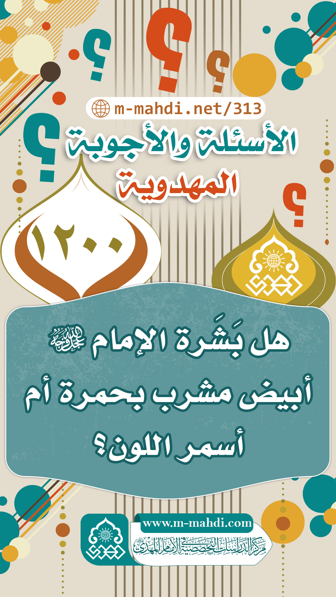 (١٢٠٠) هل بَشَرة الإمام (عجّل الله فرجه) أبيض مشرب بحمرة أم أسمر اللون؟