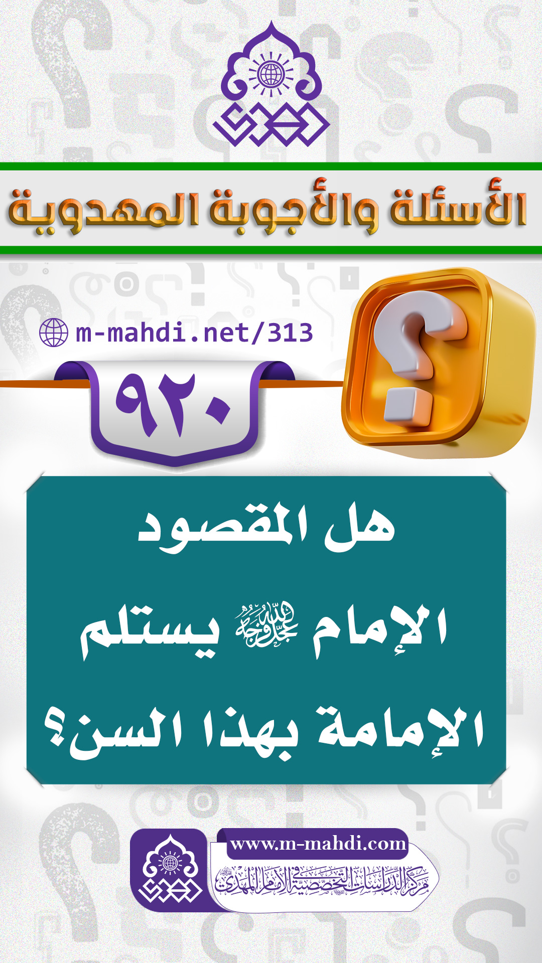 (٩٢٠) هل المقصود الإمام (عجّل الله فرجه) يستلم الإمامة بهذا السن؟